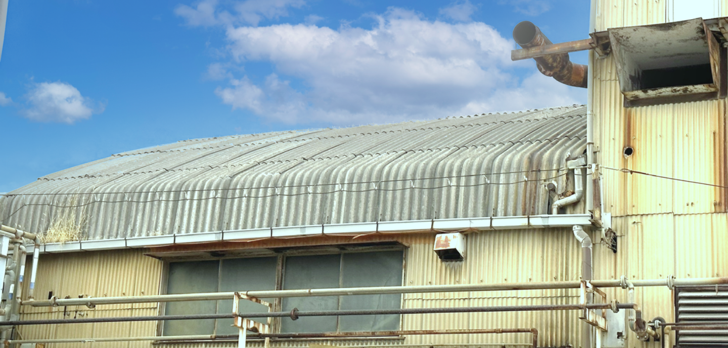 当社は主に「スレート」と呼ばれる建材を使い、工場や店舗の外壁・屋根工事を行っております。
